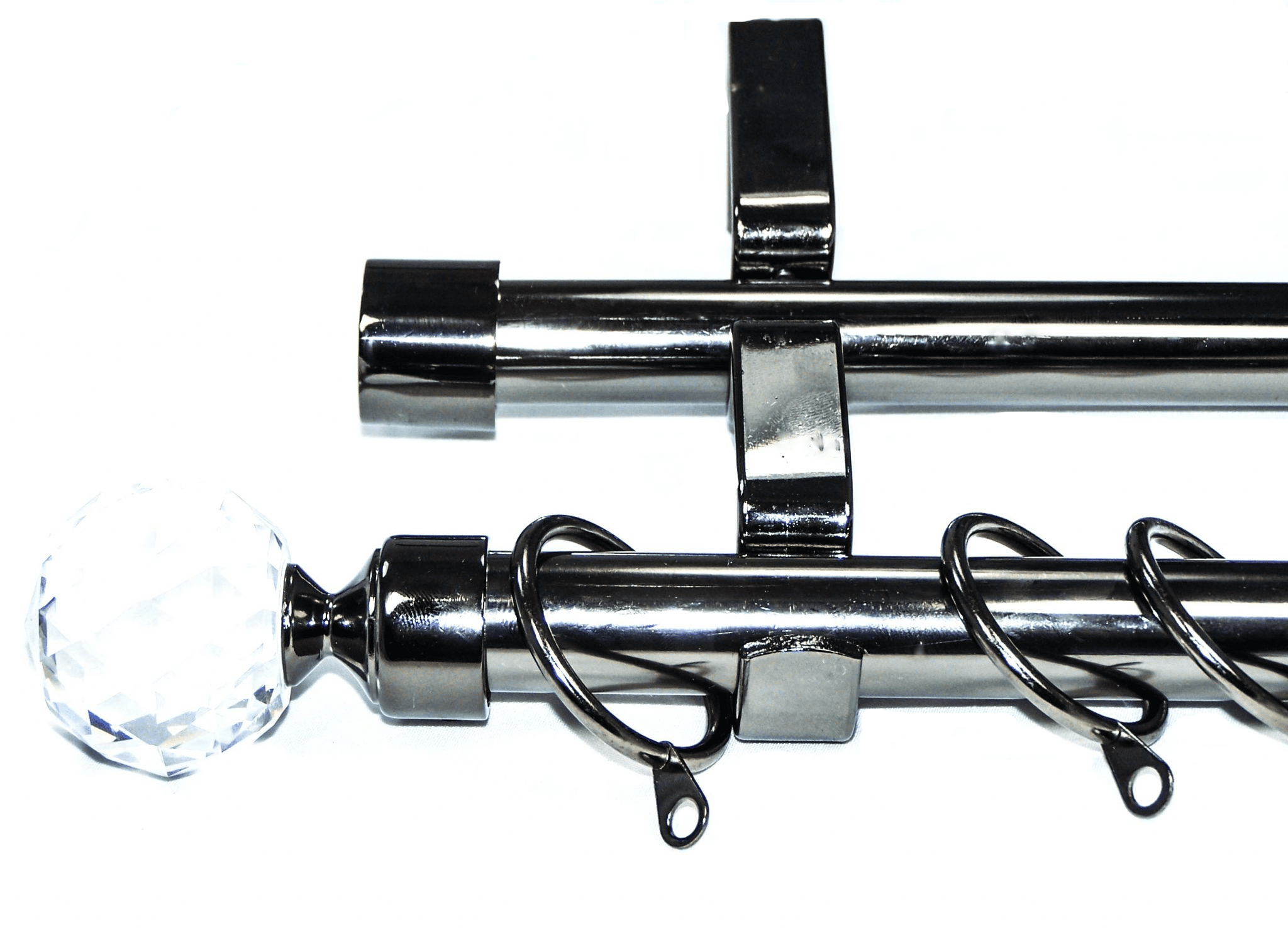 4 Graphite black curtain pole systems with eye catching crystal glass finials.