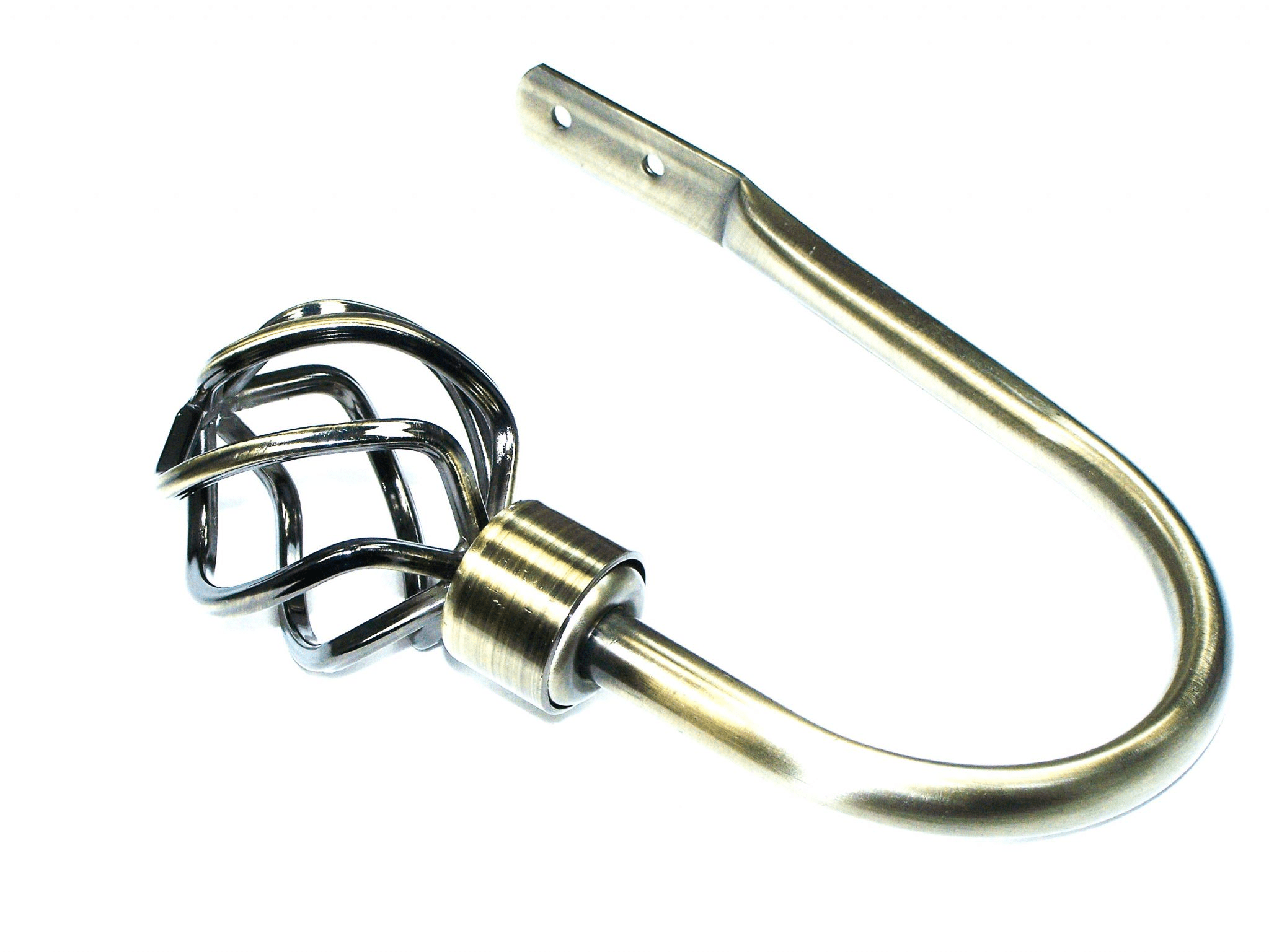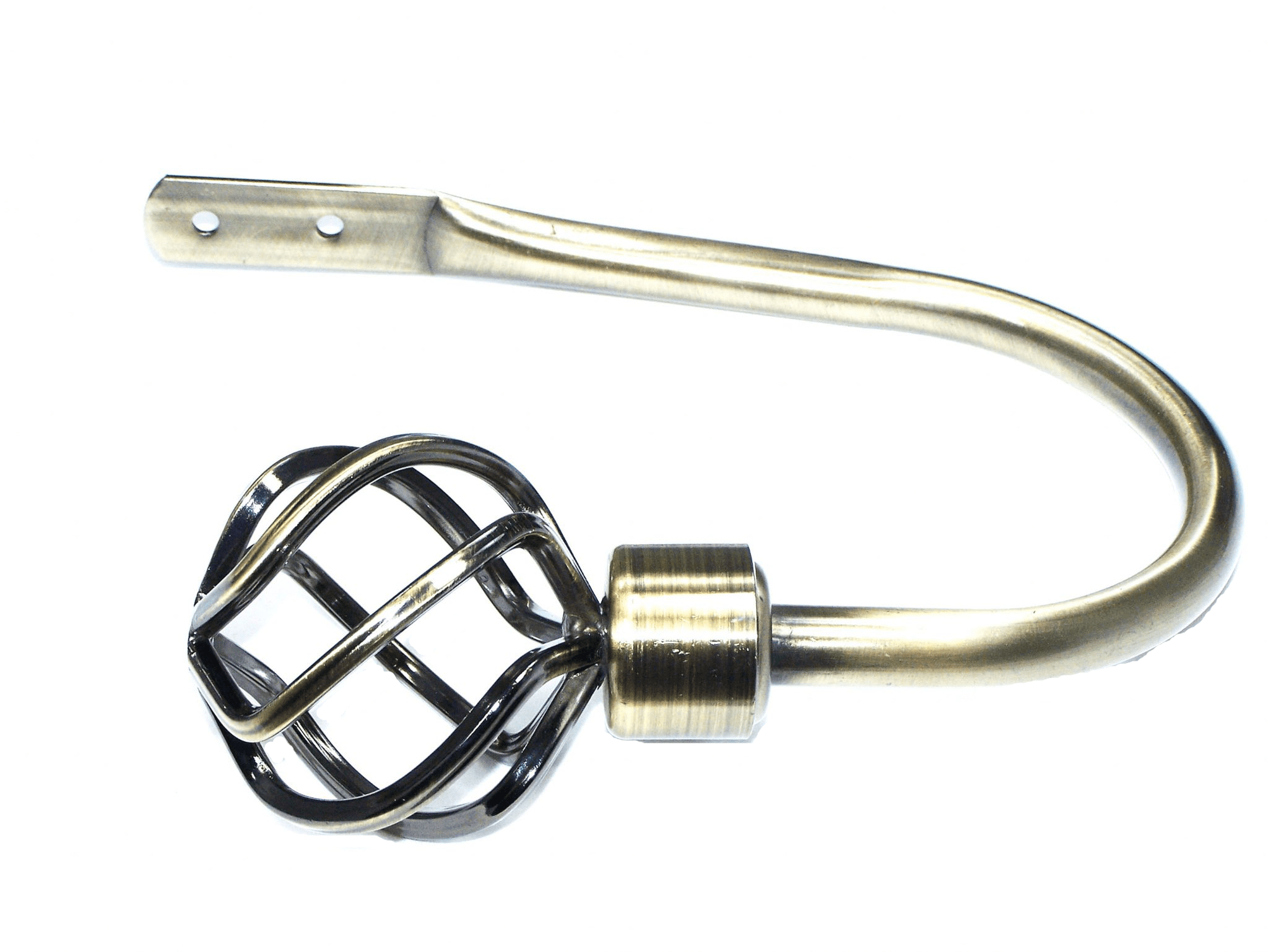 Beautifully crafted twisted cage curtain tiebacks in an Antique Brass finish.